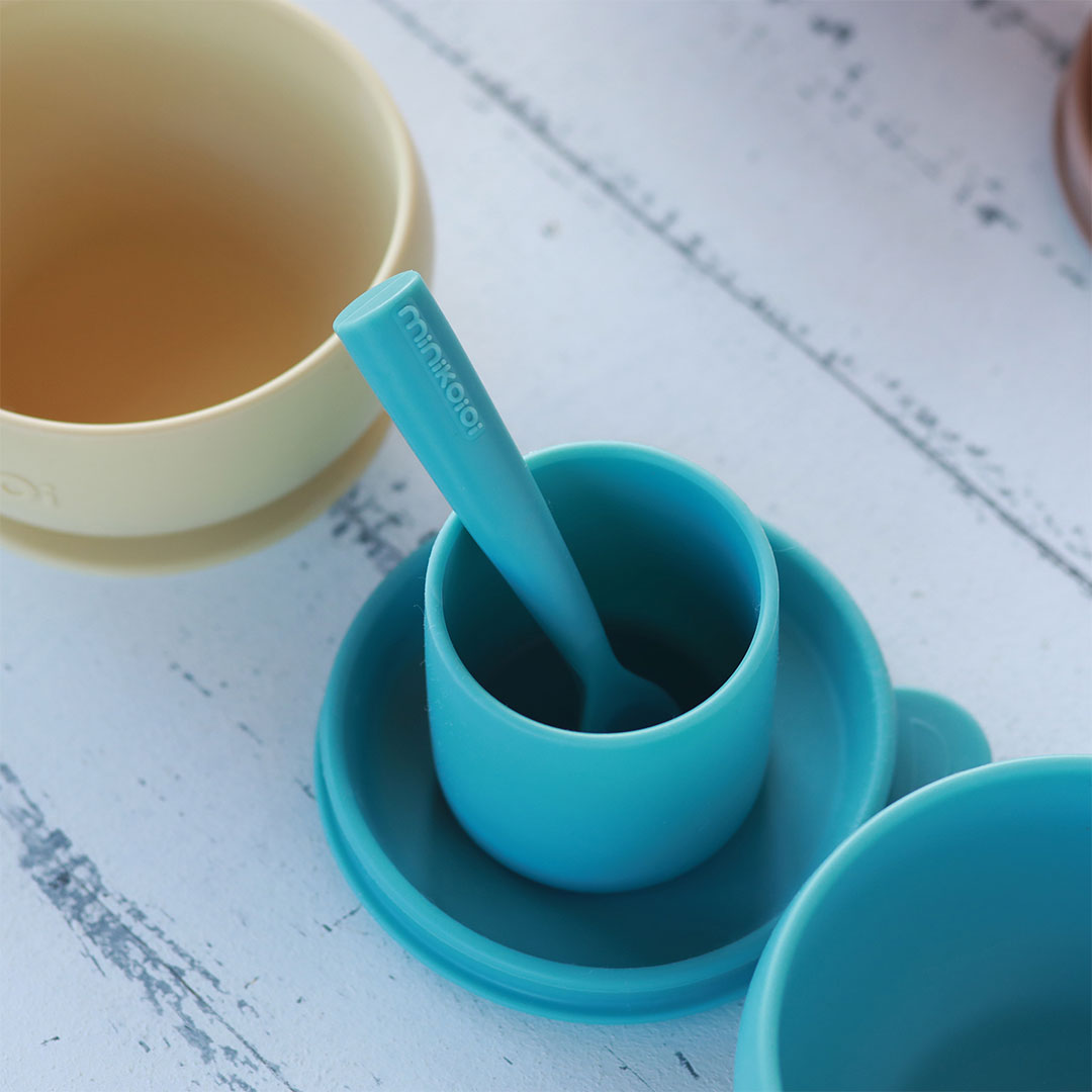 Составен од 3 дела: длабок сад со капак, чаша и лажица