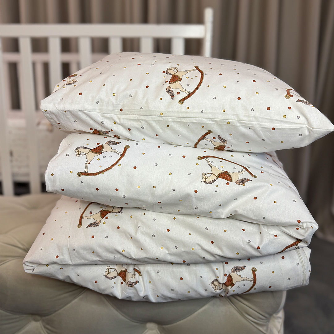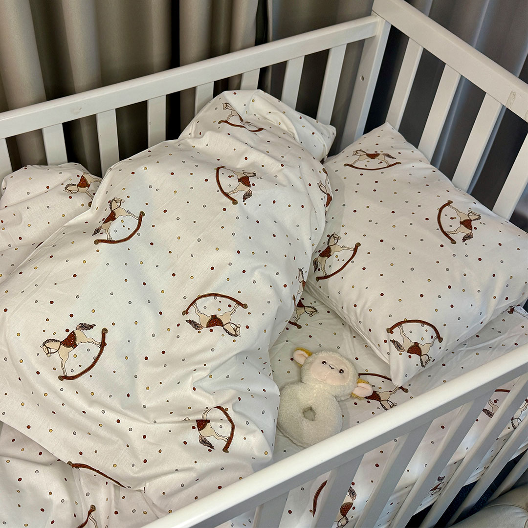 Постелнината е изработена од 100% reinforce памук. Материјалот е нежен, хипоалерген и совршен за чувствителната бебешка кожа.