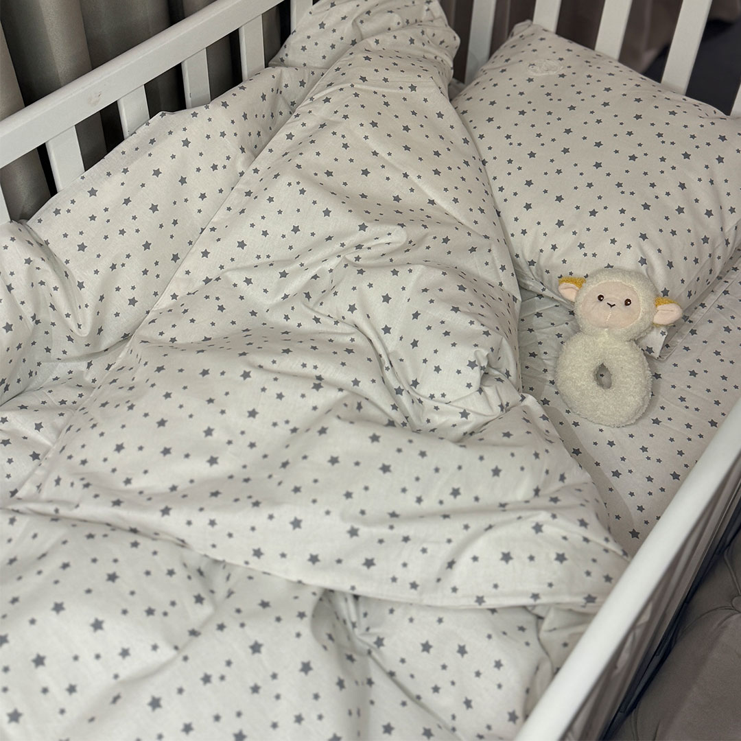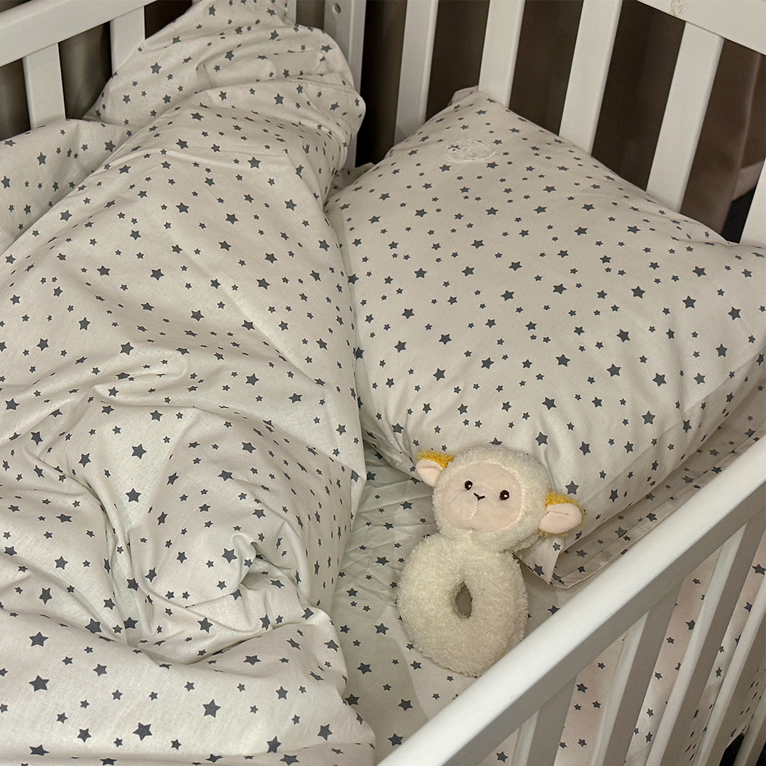 Постелнината е изработена од 100% reinforce памук. Материјалот е нежен, хипоалерген и совршен за чувствителната бебешка кожа.