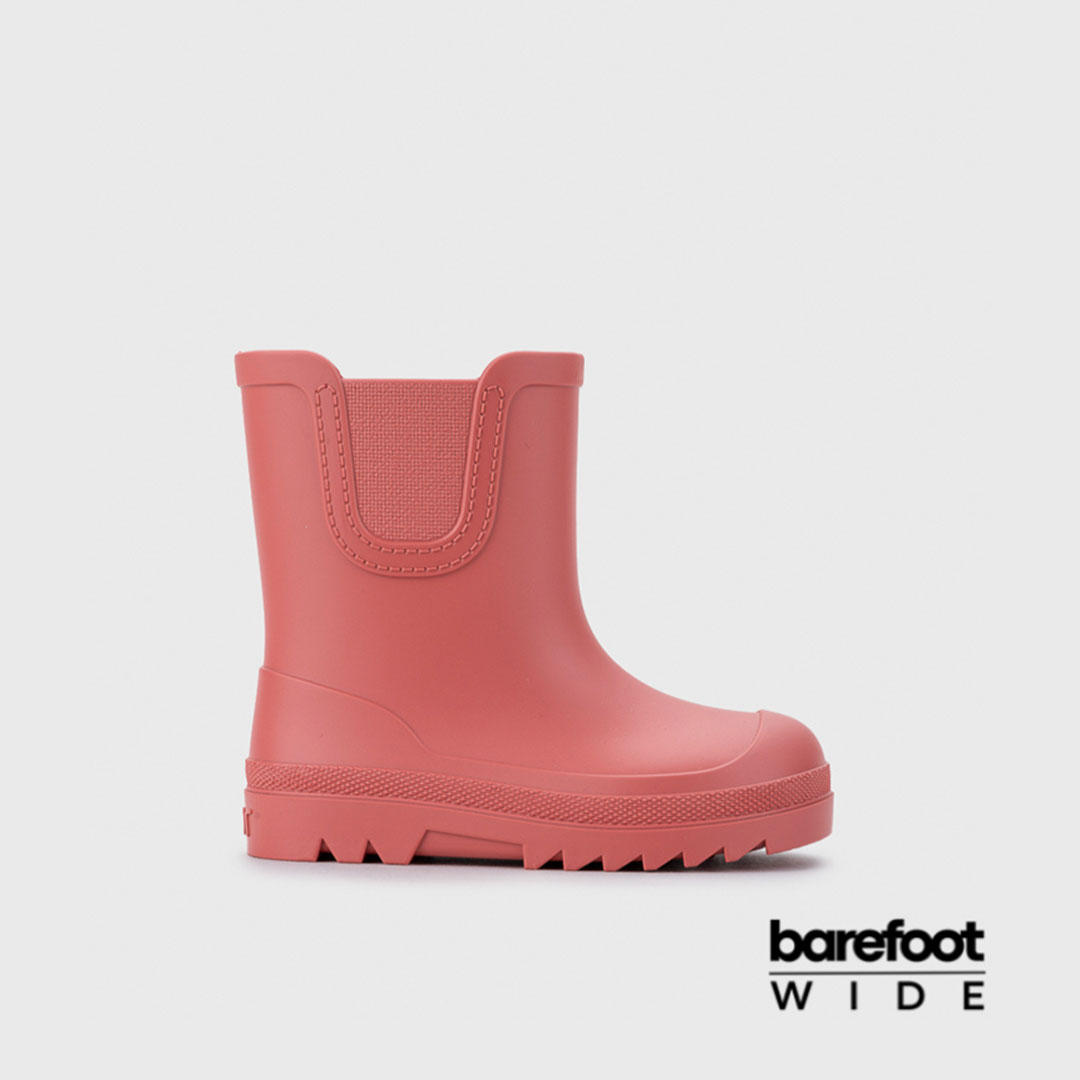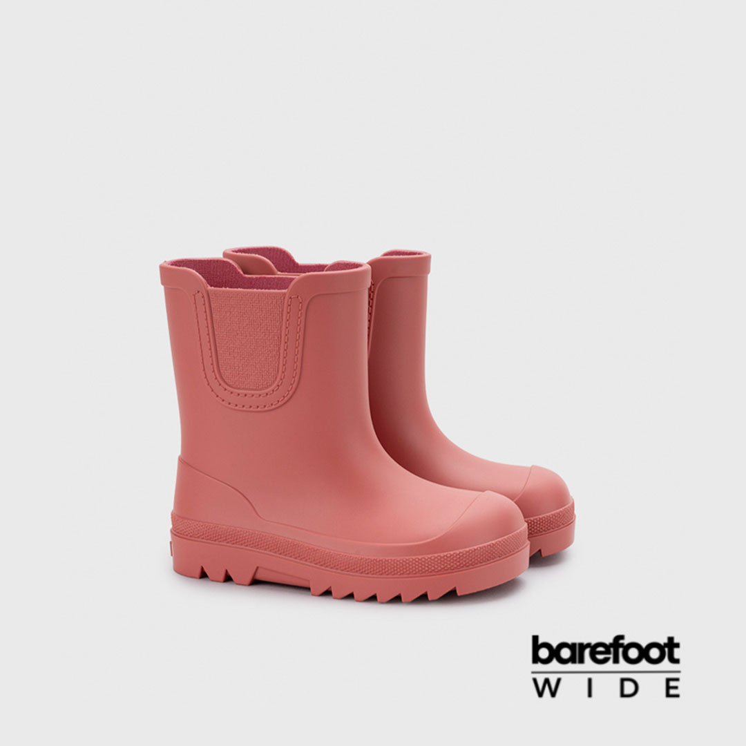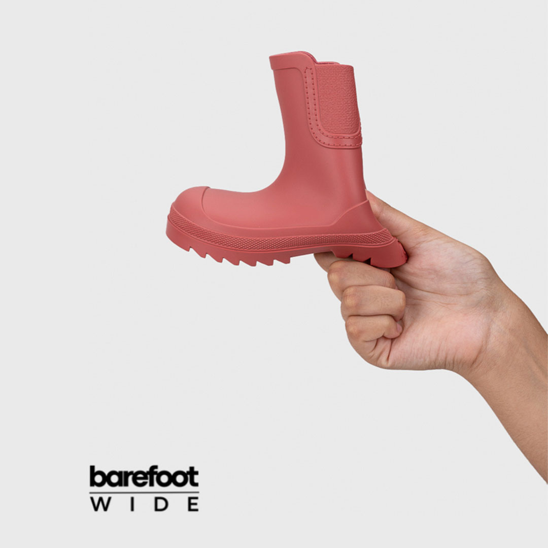 Mонохроматски чизми за дожд со мат боја, “Barefoot wide” концепт, со широк простор за прстите , флексибилни, меки и со влошка што се отстранува.
